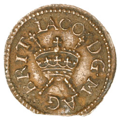 JAMES I, (1603 - 1625), copper farthing, Harrington issue of 1613-4, mm trefoil, (S.2676, N.2132). ...