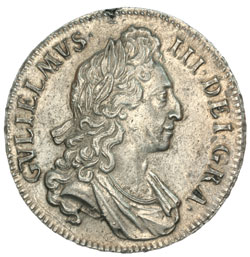 WILLIAM III, first bust, crown, 1695 Septimo (S.3470). Toned, nearly very fine/very fine.