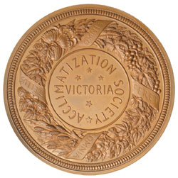 ACCLIMATISATION SOCIETY OF VICTORIA 1868, in bronze (58mm) by J.S. & A.B Wyon, (C.1868/3). In ...