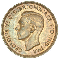 GEORGE VI, 1939, kangaroo reverse. Red and brown uncirculated and rare in this condition. ...