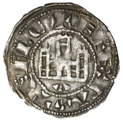 SPAIN, Castile, Alfonso X, (1252-1284), silver dinero, Burgos mint, obv. castle B below, MONETA CASTELLE ...
