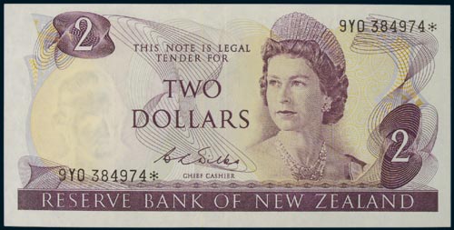 NEW ZEALAND, Reserve Bank, D.L. Wilks (1968-1975) two dollars, star replacement note, 9Y0 863553*, (P.163b; ...