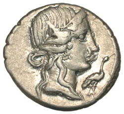CN. LENTULUS CLODIANUS, (88 B.C.), silver denarius, Rome mint, (4.264 grams), obv. Mars helmeted bust ...