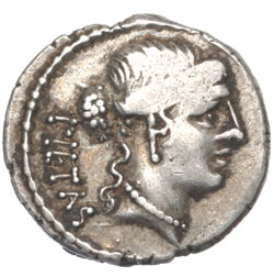 ALBINUS BRUTI, (c.48 B.C.), silver denarius, Rome mint, (4.118 grams), obv. Pietas head to right, PIETAS behind, rev. two joined hands holding caduceus, ALBINVS [B]RVTI F around, (S.427, Cr.450/2, Syd.942, B.Postumia 10]). Dark tone, good fine/good very fine and rare.