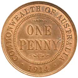 GEORGE V, 1914. Red and brown uncirculated and rare in this condition.