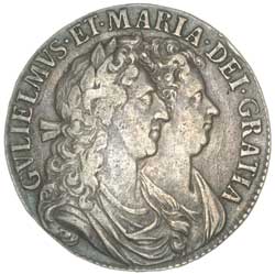 WILLIAM AND MARY, silver halfcrown, 1689, first bust and shields, variety with pearls, caul only frosted, (S.3434, ESC 505). Attractive grey tone nearly very fine/good fine.