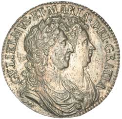 WILLIAM AND MARY, silver halfcrown, 1689, first bust and shields, variety with pearls, caul only frosted, (S.3434, ESC 505). Attractive light tone, good very fine or better and scarce in this condition.