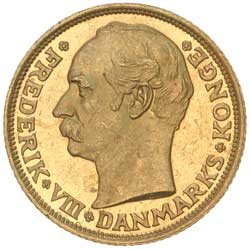 DENMARK, Frederick VIII twenty kroner, 1908(h) VBP.- GJ (KM.810). Nearly extremely fine.