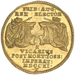 GERMANY, Saxony, Friedrich August 1, ducat, 1711 (KM.805). Possibly has been mounted on edge, otherwise good very fine.