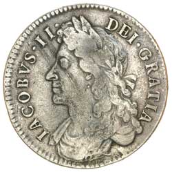 JAMES II, halfcrown, first bust, 1686 Secundo edge, (S.3408, ESC.494). Fine, has been mounted, scarce. ...
