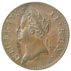 IRELAND, George II, farthing, 1760 (S.6611). Dark brown, nearly extremely fine/good very fine.