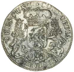 NETHERLANDS, Overyssel, silver ducaton, 1734 (D.1829). Toned and waterworn otherwise fine and scarce.