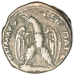 SYRIA, Seleucis and Pieria, Antioch ad Orontem, Trajan, (A.D. 98-117), silver tetradrachm (12.344 grams), 110-1, obv. Trajan laureate head r., **AUTOKR KAI* C NEP TPAIAN O CCEB **GERM DAK*, legend around, rev. **DHMARC EX IE UPAT E*, eagle standing facing on club, wings spread, head to left, (cf.S.1077, Wruck 158). Nearly very fine, scarce.