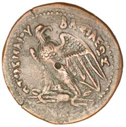 EGYPT, Kingdom of, Ptolemy IV, (221-205 B.C.), AE 37, copper drachm, (39.67 grams), Alexandria mint, issued 246-221 B.C., obv. diademed head of Zeus Ammon to right, rev. eagle to left with open wings, standing on thunderbolt, around **BASILEWS PTOLEMAIOU, between legs **SE*, (S.7842, Sv. 1148, SNG Cop. 207, Pitchfork 40-42) (illustrated); Pontos, Amisos, AE 28, (2), (S.3637); Paphlagonia, Sinope AE 29, (S.3707); Roman, denarius Septimius Severus, (S.6322); issues of Theodosius I; Valentinian II, Licinius I, Licinius II and a quadrans of period Trajan, rev. boar to right, (S.3248). Mostly very fine, several scarce. (15)