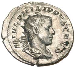 PHILIP II, (as Caesar), (A.D. 244-247), silver antoninianius, Rome mint, issued 245-6, (4.248 grams), obv. radiate bust to right, around M IVL PHILIPPVS CAES, rev. Spes advancing to left, holding flower and lifting skirt, around SPES PVBLICA, (S.9245, RIC 221, RSC 84). Bright, extremely fine.