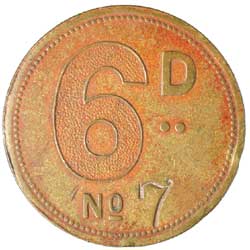 A.MCGEE, Hairdresser, 773 George St, check piece for one shilling, in bronze (27m) by Miller ...