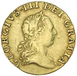GEORGE III, second head half guinea, 1772 (S.3732). Slight edge damage otherwise good fine and an extremely rare date.