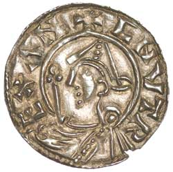 AETHELRED II, (978-1016), penny, long cross type, issued 997-1003, obv. bare headed bust left, around ...