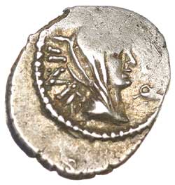 JULIUS CAESAR, (c.47-46 B.C.), silver denarius, (3.91 grams), Africa mint, obv. diademed head of Venus ...