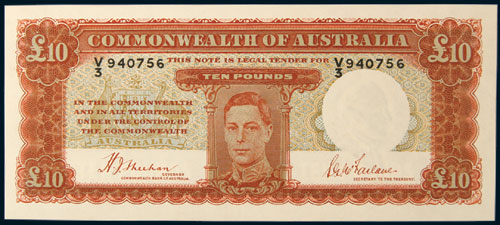 TEN POUNDS, Sheehan/McFarlane (1940) V/3 940756 (R.58). Good colour, flat good extremely fine and rare thus.
