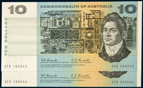 TEN DOLLARS, Coombs/Randall (1967 SFR 186043/4 (R.302) consecutive pair . Uncirculated. (2)