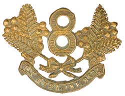 8TH AUSTRALIAN INFANTRY REGIMENT (VICTORIA), 1900-1912, cap badge, double scroll type (26mm) in brass, single ...