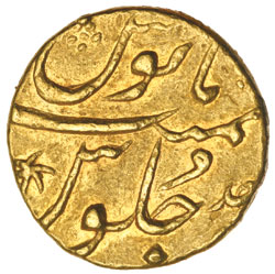 NAWABS OF SURAT, gold mohur in the name of Shah Jahan III, (A.H. 1173-1174, A.D. 1759-1760), gold mohur, year 1, (cf. KM.475.4 for silver). Good very fine, rare.