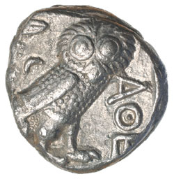 ATTICA, Athens, (late 4th early 3rd century B.C.), silver tetradrachm, (17.02 grams), obv. head of Athena to right wearing ivy crested helmet, eye in profile, rev. owl standing to right, head facing, olive twig and crescent behind, to right **AQE, (S.2537, BMC 144, SNG Cop. 63). Toned, small flan, nearly extremely fine and scarce