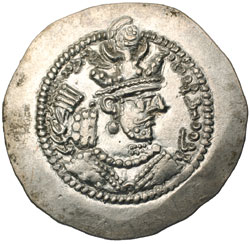 SASANIAN KING, Yazdgard II, (A.D. 438-457), silver drachm, probably NVKI or "Navaki" mint, (4.184 grams), obv. bust to right with crown, name in outer margin, rev. fire altar, with "rasti" (just or truth) on shaft, (Sellwood 47, cf.Gobl 160, Alram 869, Panuck 337-340, M.971). Well centred, good extremely fine, very scarce.