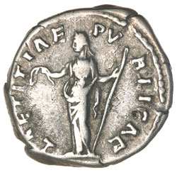 HADRIAN, (A.D. 117-138), silver denarius, issued 128, Rome mint, (2.71 grams), obv. laureate head to right of Hadrian, drapery on left shoulder, around HADRIANVS AVGVSTVS, rev. COS III around, Victory seated to left on throne, (cf.S.3480, RIC 345, RSC 363); Faustina Junior, wife of Marcus Aurelius, (d.A.D. 175), silver denarius, issued 147-9, (3.00 grams), obv. FAVSTINAE AVG PII AVG FIL, draped bust to right, rev. LAETITIAE PVBLICAE, Laetitia standing to left holding diadem and sceptre, (cf.S.5258, RSC 155a, RIC A506b). Fine - very fine. (2)