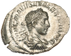 SEVERUS ALEXANDER, (A.D.222-235), silver denarius, issued 222-8, Rome mint, (3.158 grams), obv. laureate bust to ...