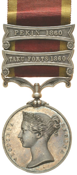 SECOND CHINA WAR MEDAL 1857-60 - TWO BARS - TAKU FORTS 1860, Pekin 1860, Thos. ...