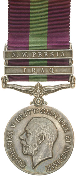 GENERAL SERVICE MEDAL (GVR) 1918-20 - TWO BARS - KURDISTAN; Iraq. 3110 L-Hvldr. Natha Singh ...