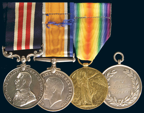 Otto Ernest Lessing. Enl.01May1917 Melbourne Disch.23May1919 MM.: L.G.: 03Jul1919 C.G.: 17Oct1919 'At Montbrehain, East of Peronne, on the 5th Oct., 1918, this man handled his Lewis Gun in a most effective manner. When a post established by the enemy in the northern corner of the village was causing considerable trouble and holding up the advance, Pte Lessing led the party under most heavy machine gun fire and rushed it. He was one of the first to jump down into the trench, and captured 1 H.G. and 5 prisoners. Throughout the day his excellent work as a gunner had a great effect on the enemy, of whom he killed a considerable number'. Together with research, original certificate for the MM, copy of citation, identity discs (3), photographs, 2 Aust Division Platoon Competition medallion in silver, inscribed '6836A Pte O.Lessing 24 Bn AIF, cigarette case.