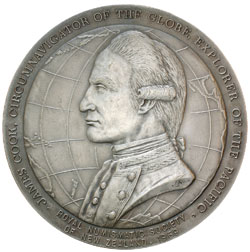 ROYAL NUMISMATIC SOCIETY OF NEW ZEALAND, 1969, Bicentenary of James Cook's rediscovery of New Zealand, in sterling silver (63mm) (K.39). Issue of two hundred and fifty, with case of issue. Uncirculated.