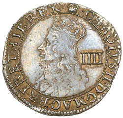 CHARLES II, third hammered coinage (1660-2) fourpence, mm crown (S.3324). Flat on hair, otherwise nearly ...
