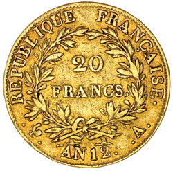 FRANCE, Bonaparte, twenty francs, year 12A (Paris mint) year (1803), Empereur title, (KM.661). Nearly very ...
