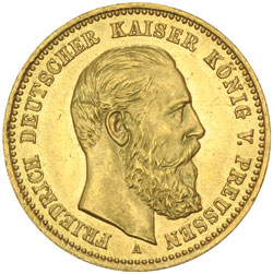 GERMANY, Prussia, Freidrich III, ten mark, 1888A (KM.514). Nearly uncirculated.