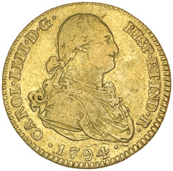 SPAIN, Charles III - Charles IV, gold two escudos, Madrid mint, 1794 MF, (KM.435.1); gold ...