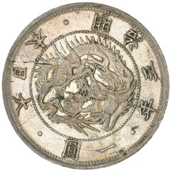 JAPAN, Meiji, one yen, year 3, (1870), type II, (KM.Y.5.2). About uncirculated and rare. ...