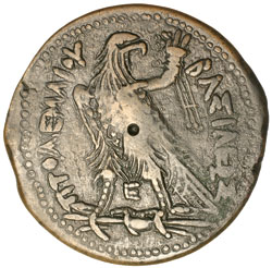 EGYPT, Kingdom of, Ptolemy IV, (221-205 B.C.), AE 40, Alexandria mint, issued 221-205 B.C., (51.6 grams), obv. diademed head of Zeus Ammon to right, rev. eagle to left with closed wings, head to right, standing on thunderbolt holding cornucopia on shoulder, around **BASILEWS PTOLEMAIOU*, between legs E, (S.7815, Sv.974, SNG Cop.224-6, Pitchfork 44-48). Nearly very fine.