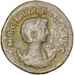 MAGNIA URBICA, wife of Carinus, (A.D. 283-285), billon antoninianus, Rome mint, (3.200 grams), obv. diademed ...