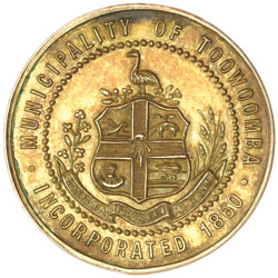 JUBILEE OF TOOWOOMBA, 1910 in gold (9ct, 6.3gms)(C.1910/4). Toned, extremely fine and very rare.
