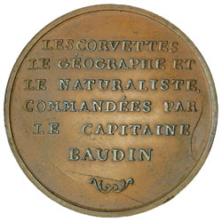 BAUDIN'S EXPLORING EXPEDITION, 1801, in copper (38mm) for the Corvettes Geography and Naturalist voyage to ...