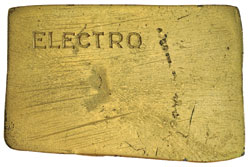 SOUTH AUSTRALIA, Government Assay Office, Adelaide, gold ingot (1852), an electrotype copy of an ingot of 5dwt.5grs (Andrews 720), obverse, with Sawtell incuse top left corner, reverse, with 'Electro' engraved. Very fine.