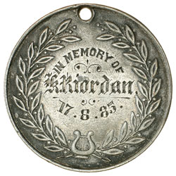 THE 'CANTATA' MEDAL, 1885, in silver (25.5mm) inscribed on reverse 'In Memory of / K.Riordan ...