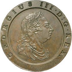 GREAT BRITAIN, George III, copper cartwheel twopence, 1797 (S.3776). Attractive dark brown patina, nearly extremely ...