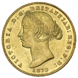 QUEEN VICTORIA, second type, 1870. Softly struck on date, extremely fine.