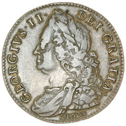 GEORGE II, old head halfcrown, 1746, LIMA, (S.3695A, ESC 606). Toned, good extremely fine and ...