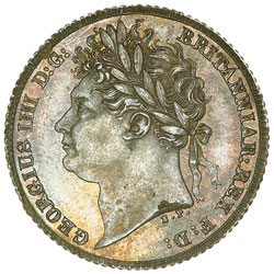 GEORGE IV, laureate head, sixpence, 1824, second reverse (S.3814). Toned, extremely fine.